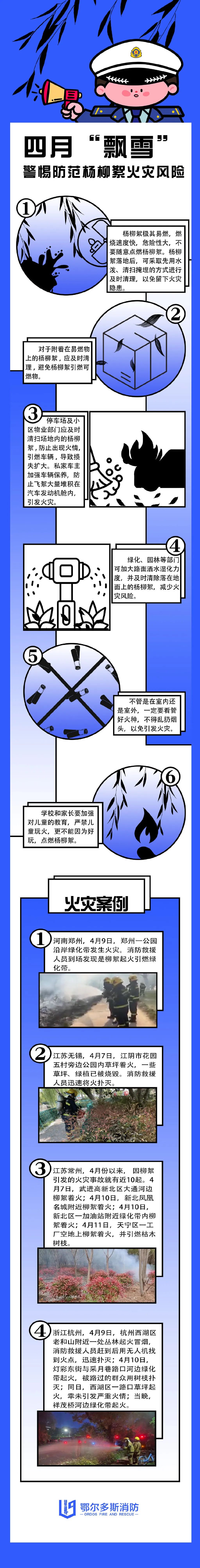 “五一”前后是杨柳絮飘飞的高峰期。杨柳絮极其易燃,且燃烧速度快,火灾风险较大。快来学习一下防范杨柳絮火灾风险应注意什么吧!