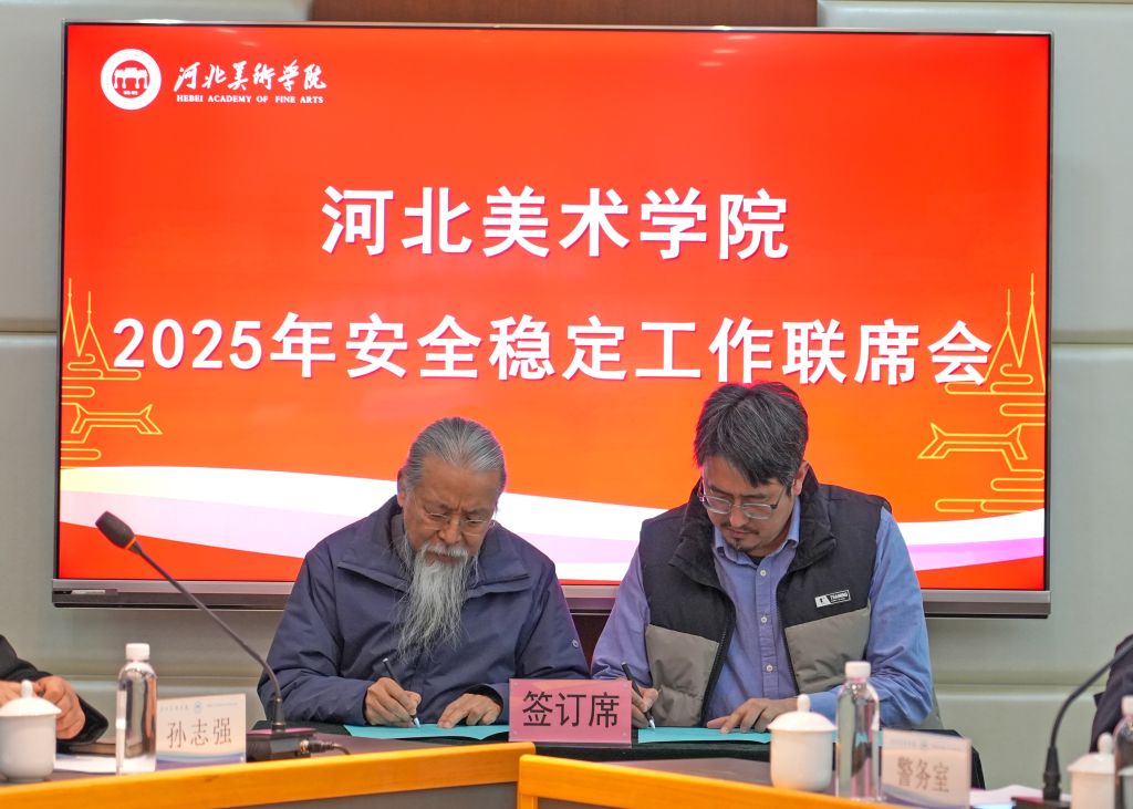 校长甄忠义代表学校与教务处、造型艺术学院等各部门签订2025年安全工作责任书。