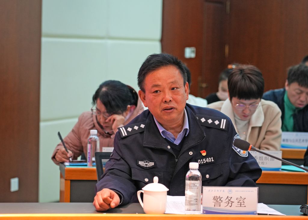学校学生工作处、造型艺术学院分别对2024年安全工作进行全面总结。学生工作处副处长姚春龙深刻剖析了存在的问题和不足,并对2025年学生心理健康、公寓管理、学生就业、意识形态等方面面临的主要风险进行了研判,并制定了防范化解应对措施。